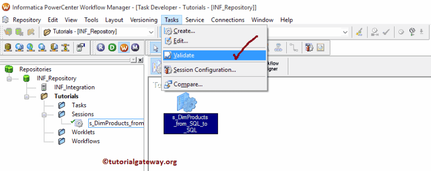 完成会话任务的创建后,我们必须在对其进行使用之前验证任务。为此,请导航到“任务”菜单并选择“验证”选项。