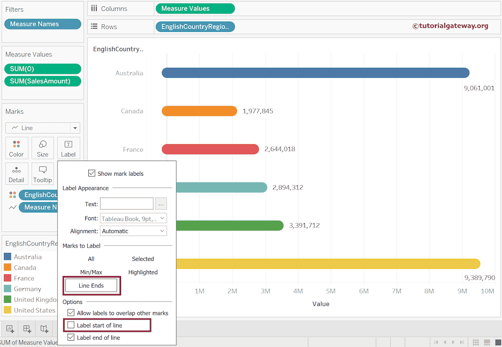 因此,展开“标签”功能区,将“标记”选项从“全部”更改为“线末端”,然后取消选中“线起点”选项标签。