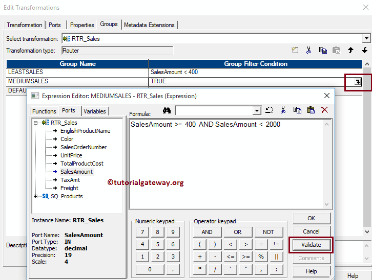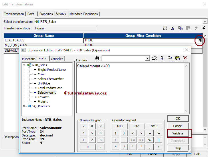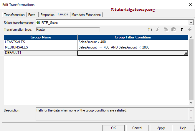 提示:Informatica 中的路由器转换将自动创建默认组(即 DEFAULT 1)。不属于上述组的记录将存储在此组中。