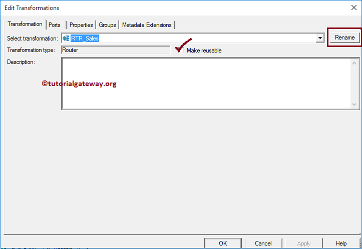 下图将显示 Informatica 路由器转换端口选项卡中可用选项的列表。