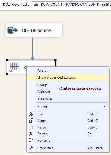 或者,您也可以使用更传统的方法配置行计数转换。右键单击行计数转换,这将打开带有多个选项的上下文菜单。在这里,从中选择“显示高级编辑器”选项。