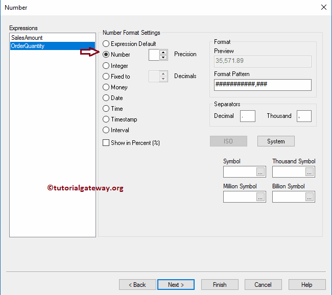 接下来,我们将格式化表达式值。众所周知,订单数量是数字,因此我们选择“数字”。销售金额的总和是货币,这就是为什么我们选择“货币”。