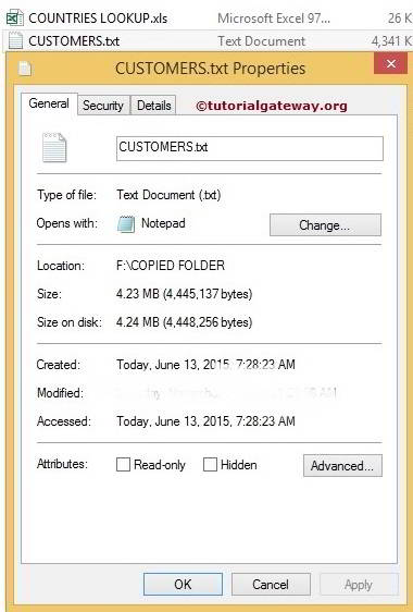 在创建包之前,让我们向您展示 Customers.txt 文件的默认属性。