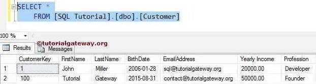 以下是用于添加、修改和删除列和约束的一些 Alter Table 示例。让我们通过一个实时示例来了解如何使用此语句更改表定义。对于此查询,我们使用 Customer 表。