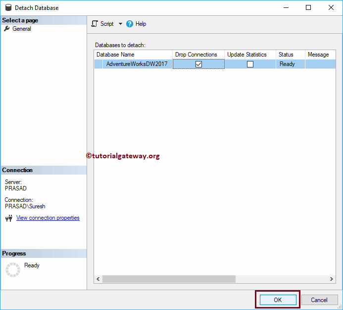 EXEC sp_detach_db N'AdventureWorks2017', 'true';