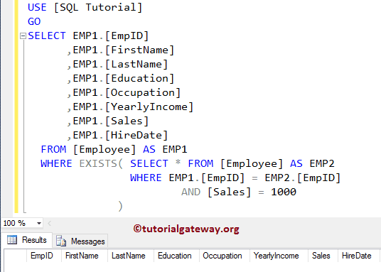WHERE EXISTS( SELECT * FROM [Employee] AS EMP2