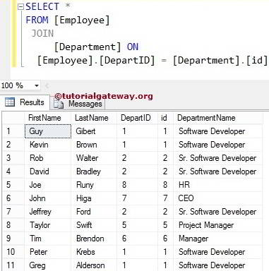 注意:[Department ID] 列重复了两次,这让用户感到烦恼。通过选择单独的列名,我们可以避免不需要的列。因此,请避免使用 SELECT * 语句。