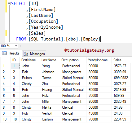 [FirstName], [LastName], [Occupation], [YearlyIncome], [Sales])