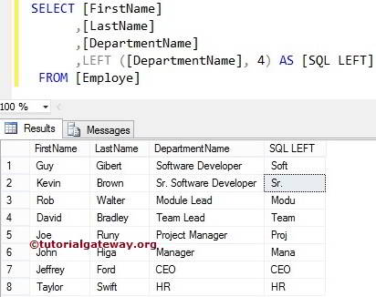 ,LEFT([DepartmentName], 4) AS [SQLLEFT]
