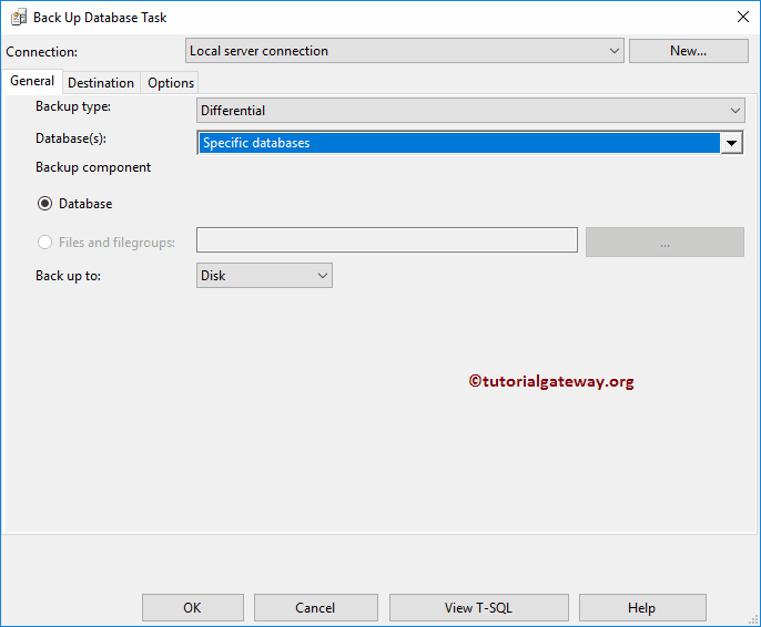 您必须遵循相同的步骤来创建差异备份;唯一的更改是将备份类型更改为“差异”。