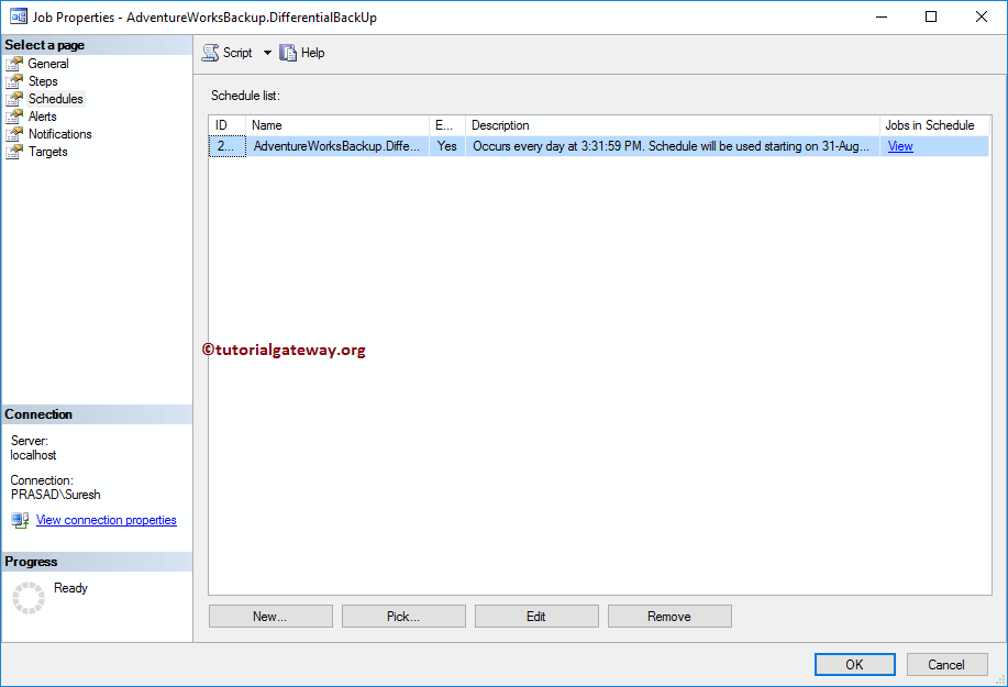 现在,如果您打开作业属性中的计划选项卡,您可以看到计划列表。