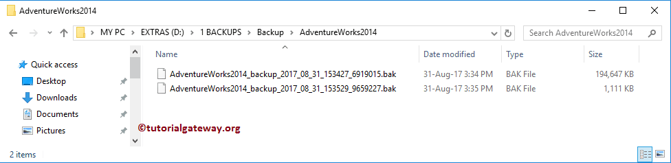 从文件系统中,您可以看到我们有一个完整备份和一个差异备份。
