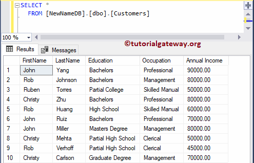 USE NewNameDB GO SP_RENAME 'Customers.YearlyIncome', 'Income', 'COLUMN'