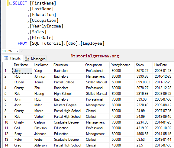 通常,在连接字符串时,您应该非常小心多余的空格。在此示例中,我们将使用 SQL RTRIM 函数和 CONCAT。对于此 字符串方法,我们将使用下面显示的数据。