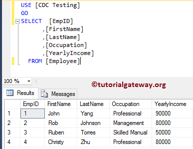 从上面的屏幕截图可以看出,我们已成功在 Employee 表上实现了变更数据捕获。