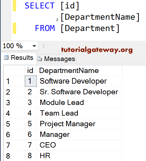 我们使用 [Employee 表] 和 [Department] 表进行此 SQL Server CTE 公用表表达式演示。