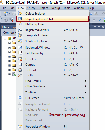要获取此信息,请在 SSMS 中选择“对象资源管理器详细信息”子菜单。