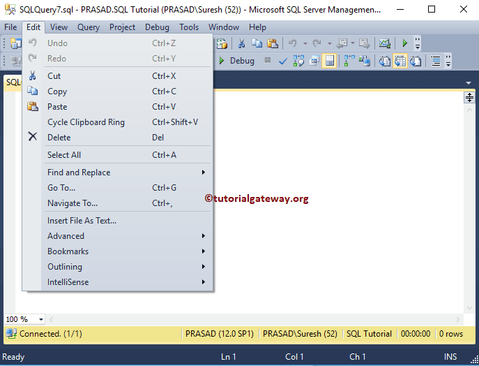 SQL Server Management Studio 编辑菜单