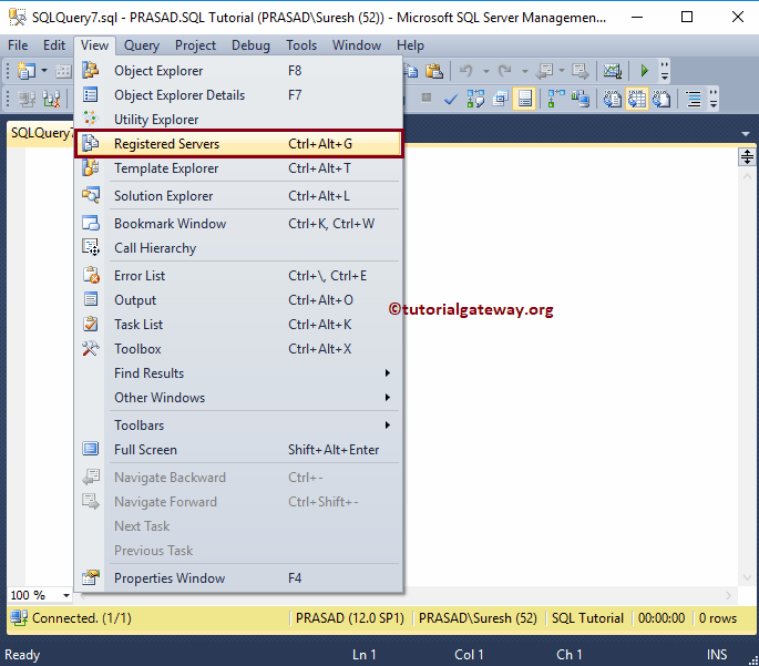 从 Management Studio 的视图菜单中选择“注册的服务器”子菜单。