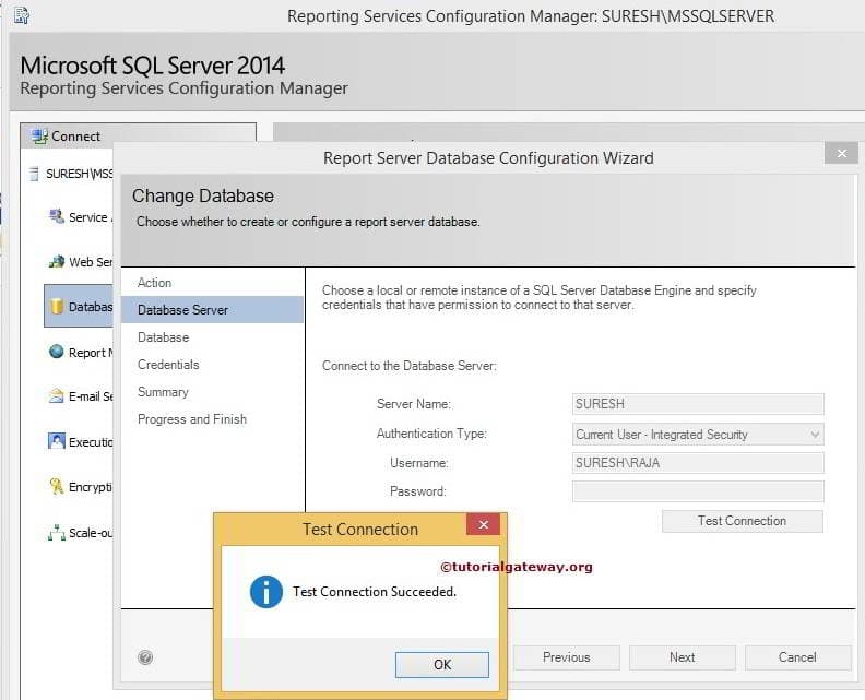 在这里,我们需要根据您的要求指定新的数据库名称。目前,我们将其命名为“New Report Server”,如下所示。
