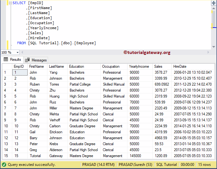 SELECT STRING_AGG([LastName], ' , ') AS TextFile FROM [Employee]
