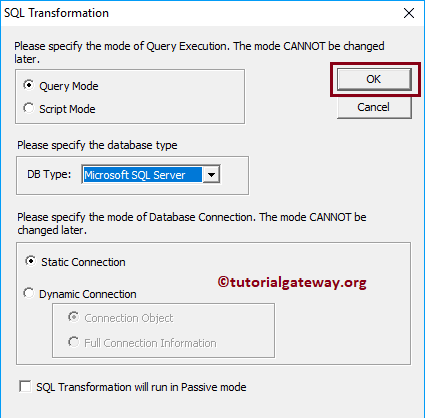 对于本次演示,我们将编写一个 Select 查询。因此,我将数据库类型更改为 Microsoft SQL Server,然后选择查询模式。
