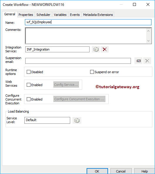 它将打开“创建工作流”窗口,用于提供唯一名称并保留默认设置。
