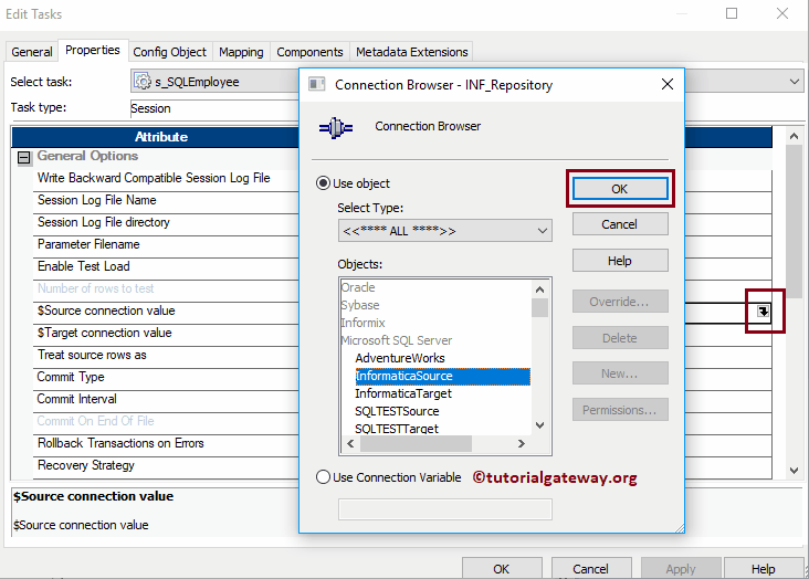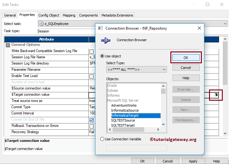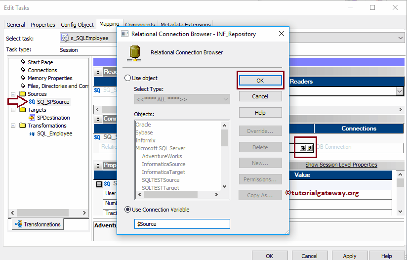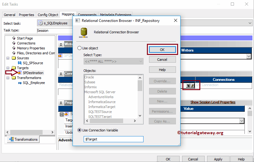 创建工作流后,我们的下一步是为我们的映射创建会话任务。