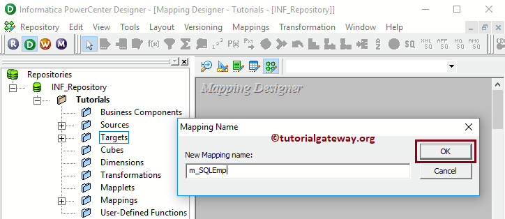 选择“创建..”选项后,将打开一个新的“映射名称”窗口。让我提供映射名称,然后单击“确定”按钮。
