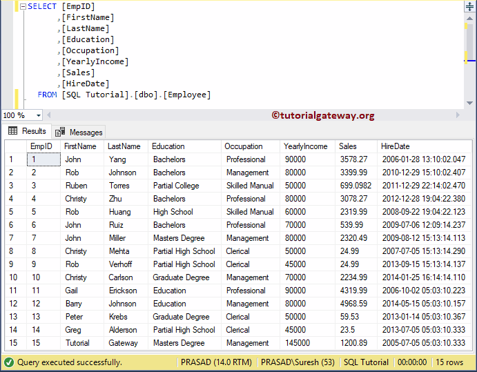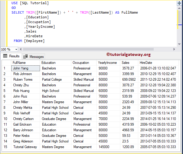 SELECT TRIM(' We Provide SQL Server Tutorials at Tutorial Gateway ') AS Result3;