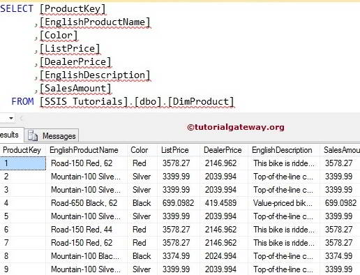 在这里,我们将使用 SSIS 数据转换将 DimProducts Excel 工作簿中的数据导出到 SQL Server 数据库表,方法是将数据类型从 DT_NTEXT 转换为 DT_WSTR。