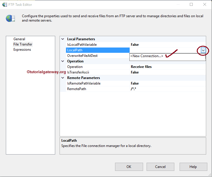 注意:SSIS FTP 任务使用 FTP 连接管理器来连接远程(FTP 服务器)文件和文件夹。