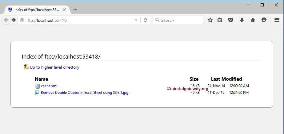 目前,我们的 FTP 服务器中没有任何子文件夹。因此,我们选择根目录 / 作为位置,并将 OverwriteDetination 属性设置为 true。SSIS FTP 任务将覆盖 FTP 服务器中存在的任何现有文件(cache.xml 和 Remove Double Quotes in Excel Sheet using 1.jpg)。