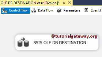 步骤 1:将数据流任务从工具箱拖放到控制流。接下来,将其重命名为 SSIS OLE DB 目标。