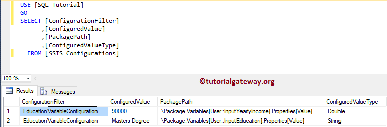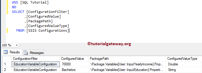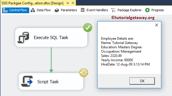 从上面的屏幕截图来看,可以看到它显示了教育背景为学士、年收入为 70000 的记录。这意味着包变量值被SSIS配置表的值替换了。