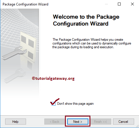 此处,我们正在解释使用 SQL Server 进行 SSIS 包配置。因此,让我选择 Server 作为配置类型。