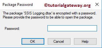 当您使用 EncryptAllWithPassword 或 EncryptSensitiveWithPassword 保护级别打开包时,将打开以下弹出窗口。您必须提供密码才能运行该包。