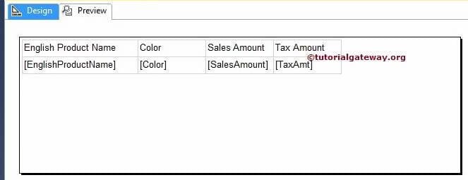 我们成功创建了第一个表格报表。我们为第一个报表选择的列是英语产品名称、颜色、销售金额和税金金额(已重命名 TaxAmt)。