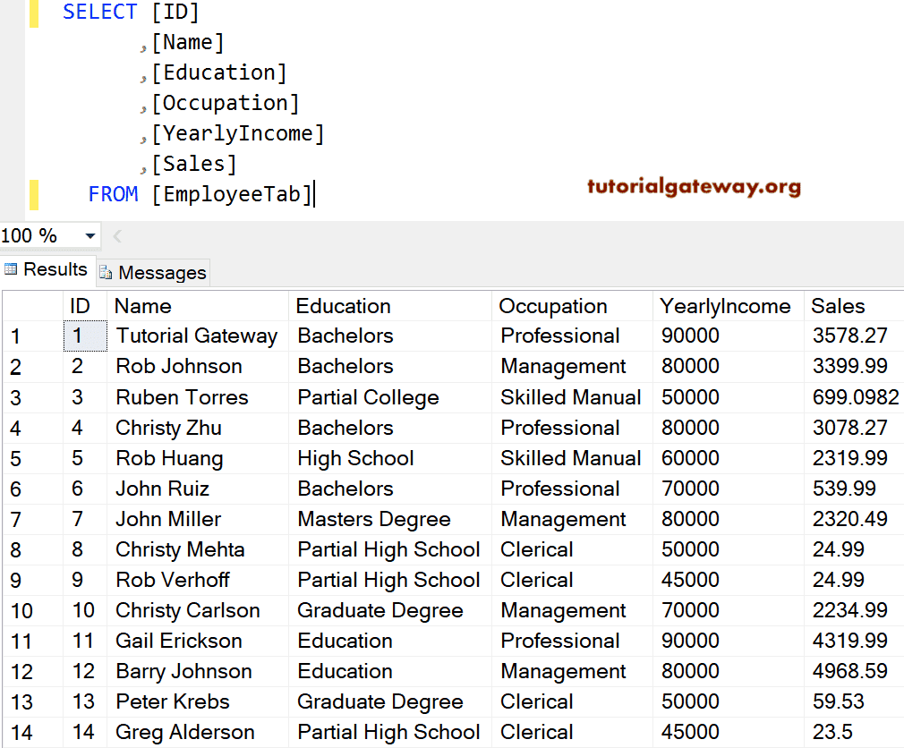 它将每个记录显示为一个单独的结果集。此外,它还反映了我们在 SELECT Statement 中所做的更改(年收入 + 25000,销售额 + 1000)。