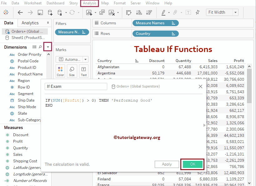 IF(SUM([Profit]) > 0) THEN 'Performing Good' ELSE 'Bad Performance' END