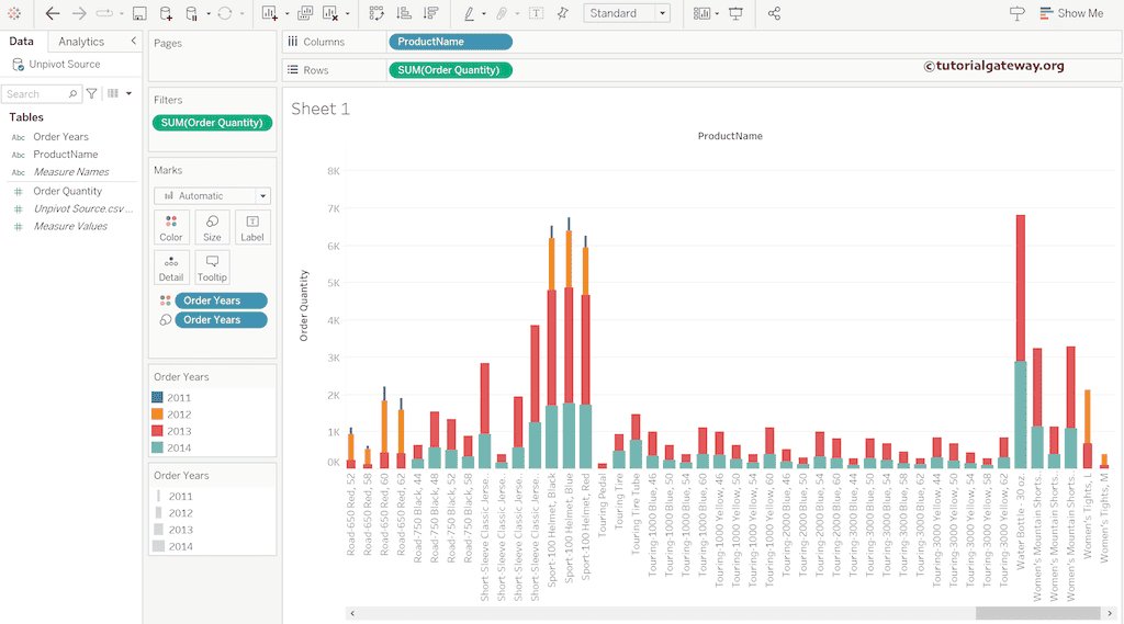 我将设计一个简单的 Tableau 图表,向您展示从逆透视表列中获取的数据。