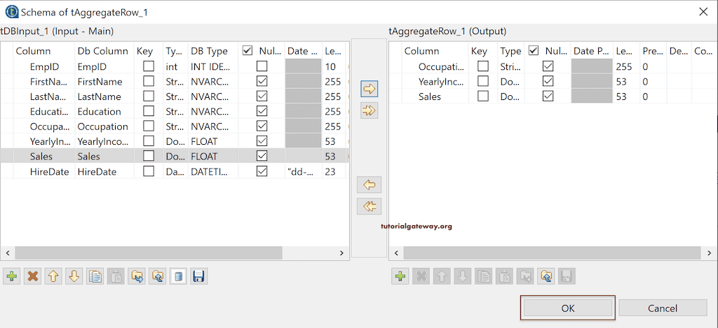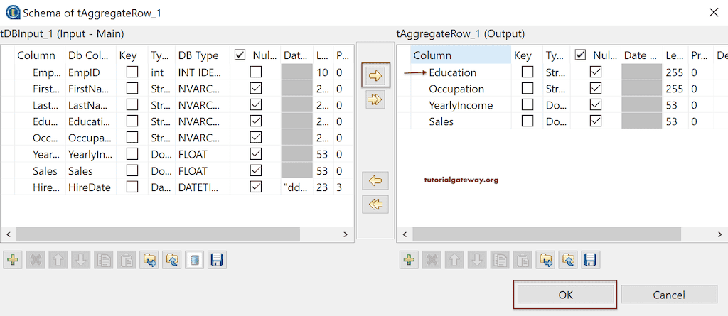 这次,我们使用了 Education 字段,因此也在 Talend 聚合行模式中添加了它们。