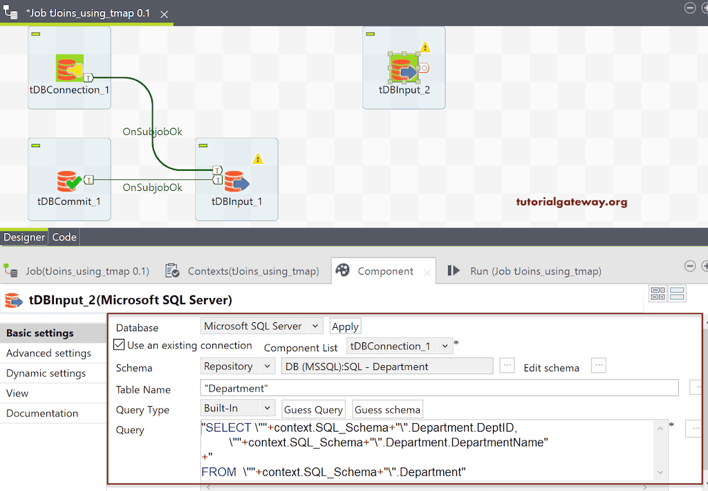 接下来,我们使用另一个 tDBInput 从存储库中选择 Department 表。