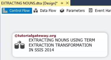 步骤 1:打开 BIDS,将数据流任务从工具箱拖放到控制流,并将其重命名为 SSIS 中的使用术语提取转换提取名词。