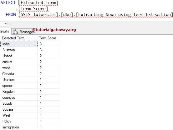 单击“确定”以完成设计我们的 SSIS 包中的使用术语提取转换提取名词。让我们运行包。