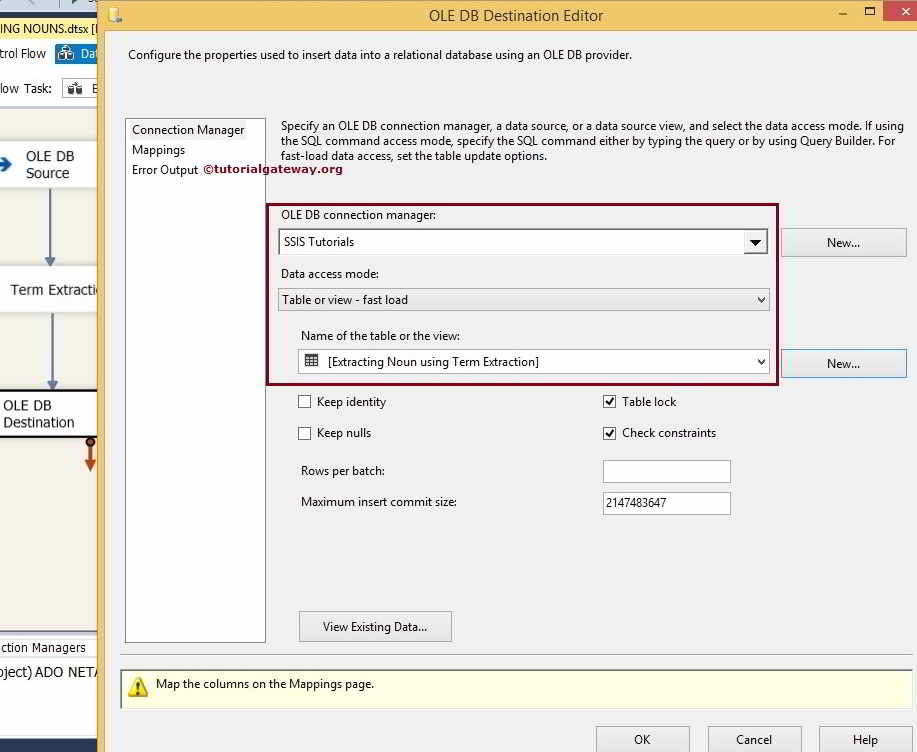在这里,我们选择数据库作为目标数据源(localhost 作为服务器实例)和 [使用术语提取提取名词] 表作为我们的目标表。
