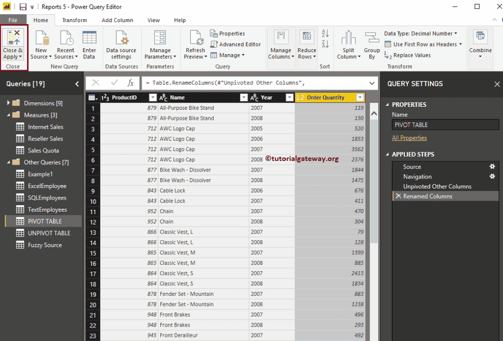 我们重命名了列使其更具意义。接下来,在“主页”选项卡下点击“关闭并应用”以应用这些更改。