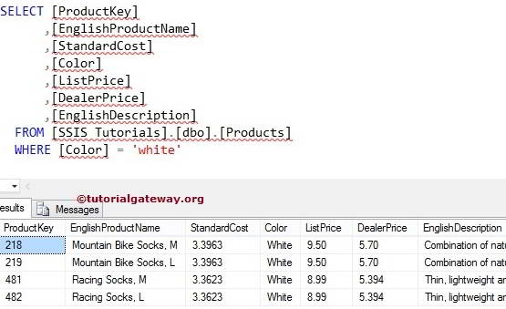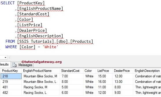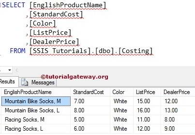 例如,所有白色产品的标准成本、标价和经销商价格已发生变化。我们的任务是使用修改后的价格更新产品表。在开始设计 SSIS SSIS 使用 OLEDB 命令转换更新数据包之前,我先向您展示数据库中的表。
