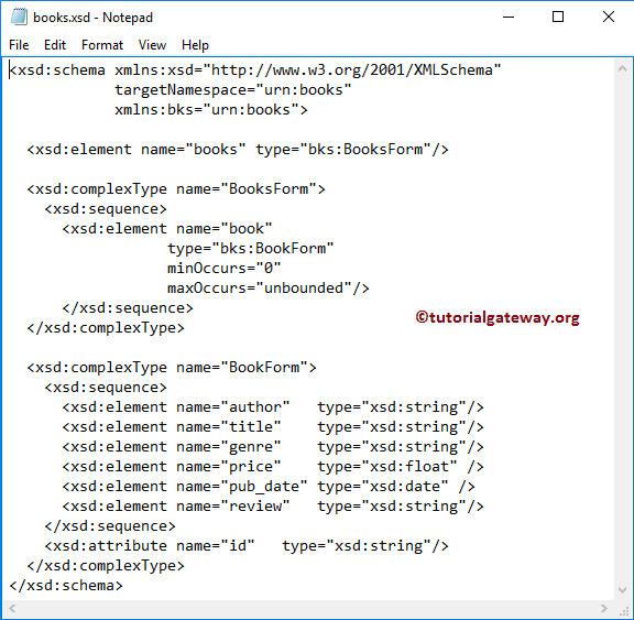 以下屏幕截图显示了我们将在本示例中使用的 XSD 文件。