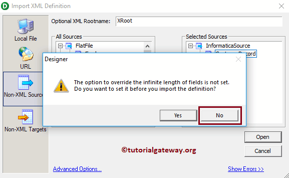 步骤 1:Informatica 中 XML 生成器转换的源定义